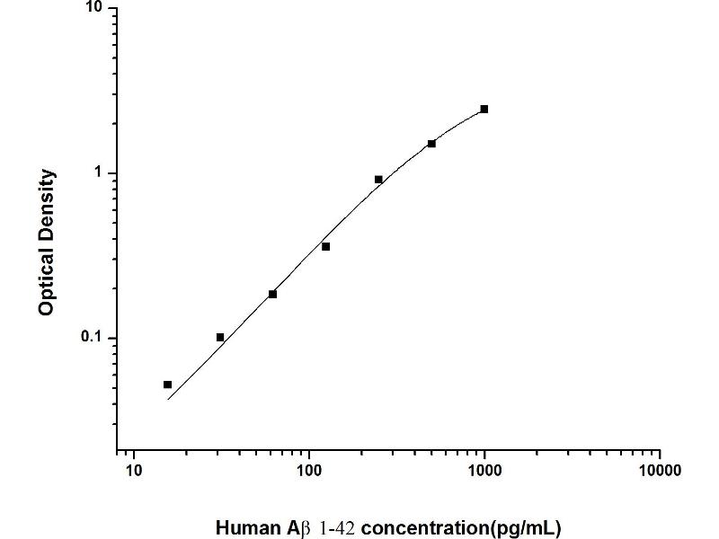 Intra-assay Precision (Precision within an assay): 3 samples with low, mid range and high level Human Aβ1-42 were tested 20 times on one plate, respectively. Inter-assay Precision (Precision between assays): 3 samples with low, mid range and high level Human Aβ1-42 were tested on 3 different plates, 20 replicates in each plate. Both intra-CV and inter-CV are < 10 %.