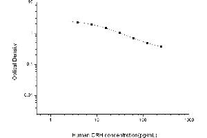 Intra-assay Precision (Precision within an assay): 3 samples with low, mid range and high level Human CRH were tested 20 times on one plate, respectively. Inter-assay Precision (Precision between assays): 3 samples with low, mid range and high level Human CRH were tested on 3 different plates, 20 replicates in each plate. Both intra-CV and inter-CV are < 10 %.