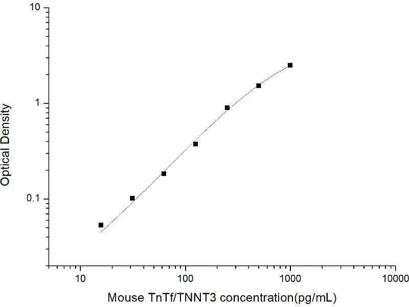 Intra-assay Precision (Precision within an assay): 3 samples with low, mid range and high level Mouse TnTf/TNNT3 were tested 20 times on one plate, respectively. Inter-assay Precision (Precision between assays): 3 samples with low, mid range and high level Mouse TnTf/TNNT3 were tested on 3 different plates, 20 replicates in each plate. Both intra-CV and inter-CV are < 10 %.