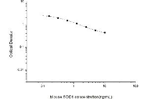 Intra-assay Precision (Precision within an assay): 3 samples with low, mid range and high level Mouse SOD1 were tested 20 times on one plate, respectively. Inter-assay Precision (Precision between assays): 3 samples with low, mid range and high level Mouse SOD1 were tested on 3 different plates, 20 replicates in each plate. Both intra-CV and inter-CV are < 10 %.