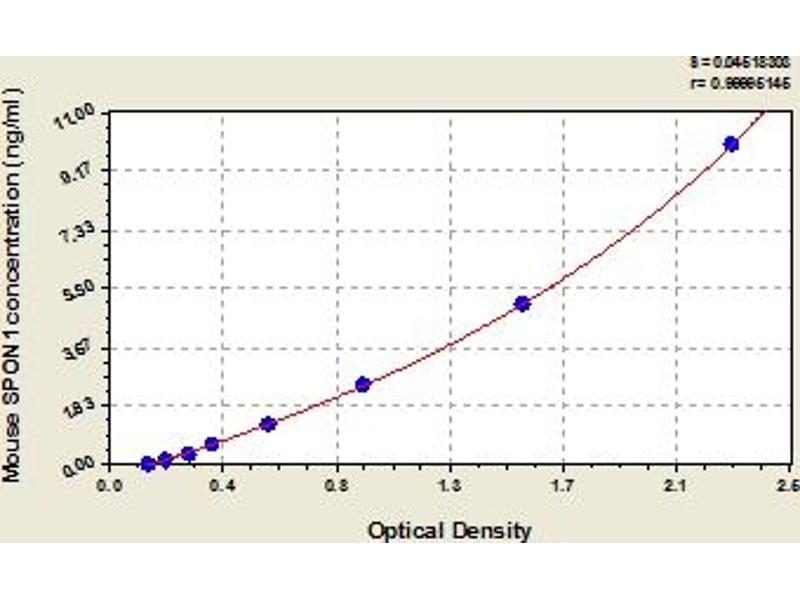 - This assay has high sensitivity and excellent specificity for detection of mouse SPON1. No significant cross-reactivity or interference between mouse SPON1 and analogues was observed. Note: Limited by current skills and knowledge, it is impossible for us to complete the cross-reactivity detection between mouse SPON1 and all the analogues, therefore, cross reaction may still exist.