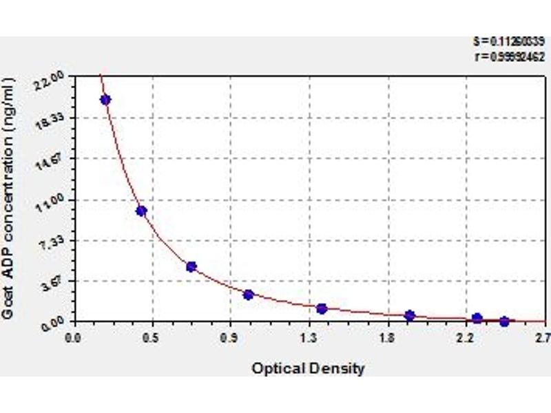 - This assay has high sensitivity and excellent specificity for detection of goat ADP. No significant cross-reactivity or interference between goat ADP and analogues was observed. Note: Limited by current skills and knowledge, it is impossible for us to complete the cross-reactivity detection between goat ADP and all the analogues, therefore, cross reaction may still exist.