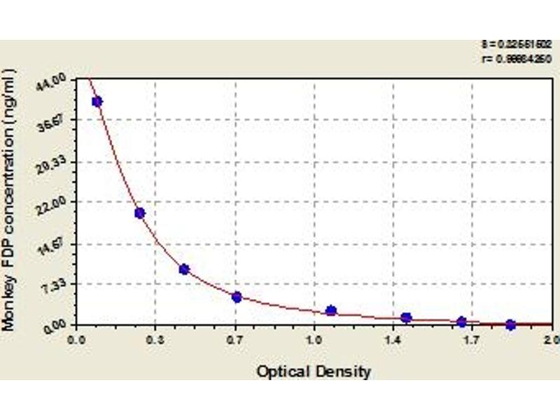 This assay has high sensitivity and excellent specificity for detection of monkey FDP. No significant cross-reactivity or interference between monkey FDP and analogues was observed. Note: Limited by current skills and knowledge, it is impossible for us to complete the cross-reactivity detection between monkey FDP and all the analogues, therefore, cross reaction may still exist.