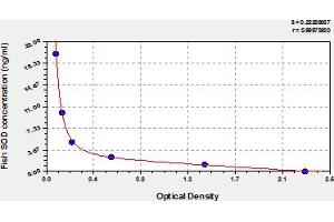 This assay has high sensitivity and excellent specificity for detection of fish SOD. No significant cross-reactivity or interference between fish SOD and analogues was observed. Note: Limited by current skills and knowledge, it is impossible for us to complete the cross-reactivity detection between fish SOD and all the analogues, therefore, cross reaction may still exist.