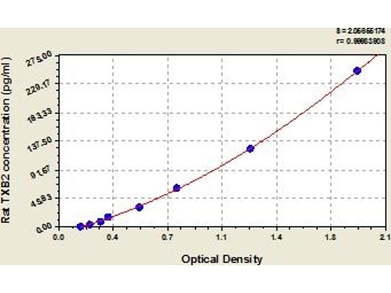 This assay has high sensitivity and excellent specificity for detection of rat TXB2. No significant cross-reactivity or interference between rat TXB2 and analogues was observed. Note: Limited by current skills and knowledge, it is impossible for us to complete the cross-reactivity detection between rat TXB2 and all the analogues, therefore, cross reaction may still exist.