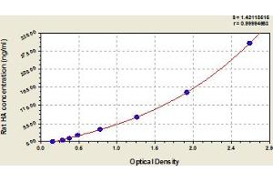 - This assay has high sensitivity and excellent specificity for detection of rat HA. No significant cross-reactivity or interference between rat HA and analogues was observed. Note: Limited by current skills and knowledge, it is impossible for us to complete the cross-reactivity detection between rat HA and all the analogues, therefore, cross reaction may still exist.