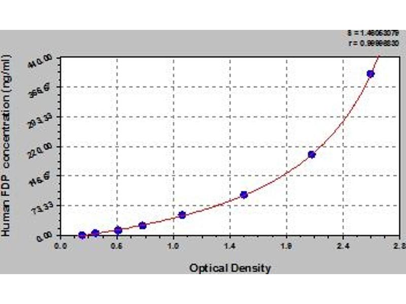 - This assay has high sensitivity and excellent specificity for detection of human FDP. No significant cross-reactivity or interference between human FDP and analogues was observed. Note: Limited by current skills and knowledge, it is impossible for us to complete the cross-reactivity detection between human FDP and all the analogues, therefore, cross reaction may still exist.
