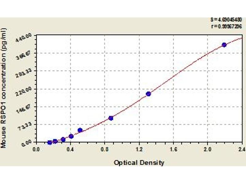 - This assay has high sensitivity and excellent specificity for detection of mouse RSPO1. No significant cross-reactivity or interference between mouse RSPO1 and analogues was observed. Note: Limited by current skills and knowledge, it is impossible for us to complete the cross-reactivity detection between mouse RSPO1 and all the analogues, therefore, cross reaction may still exist.