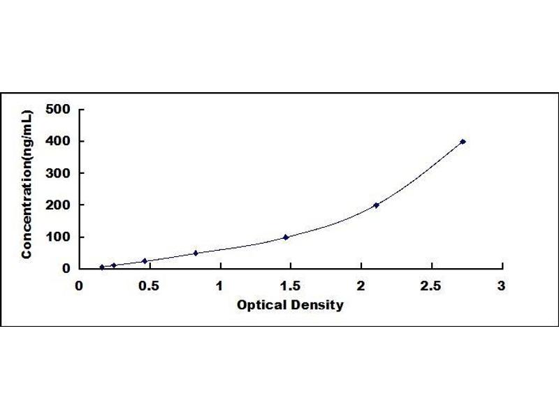 - Standard - Reconstitute the Standard with 0.5 mL of Standard Diluent, keep for 10 minutes at room temperature, shake gently (not to foam). The concentration of the standard in the stock solution is 400ng/mL. Prepare 7 tubes containing 0.25 mL Standard Diluent and produce a double dilution series by transferring 250 µL each. Mix each tube thoroughly before the next transfer. Set up 7 points of diluted standard such as 400ng/mL, 200ng/mL, 100ng/mL, 50ng/mL, 25ng/mL, 12.5ng/mL, 6.25ng/mL, and the last microcentrifuge tube with Standard Diluent is the blank as 0ng/mL.