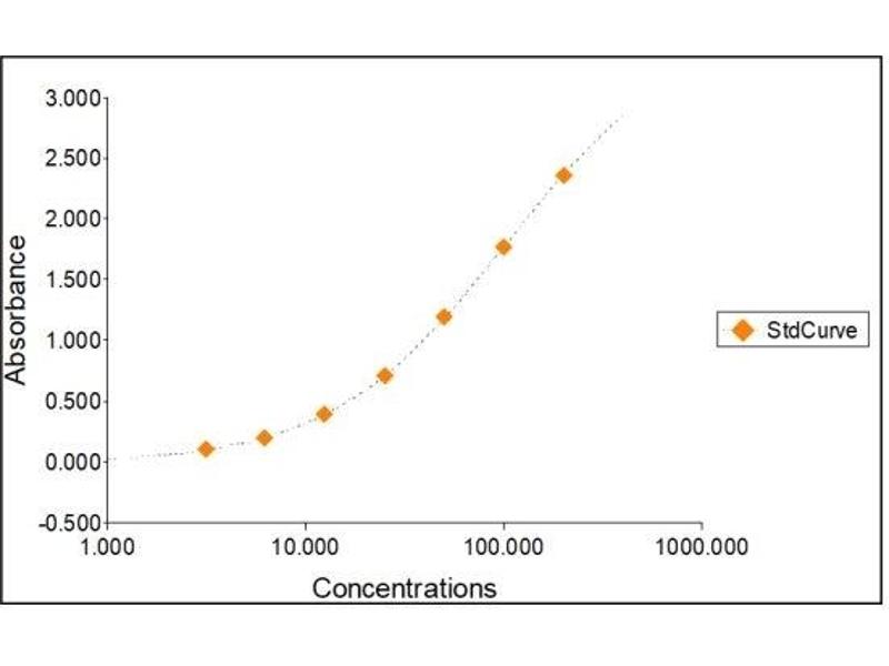 2. The Standards and the test sample(s) should be loaded into the ELISA wells as quickly as possible to avoid a shift in OD readings. Using a multichannel pipette would reduce this occurrence. Pipette 100 μL of Standard 0 (0.0 ng/mL) in duplicate Standard 1 (3.13 ng/mL) in duplicate Standard 2 (6.25 ng/mL) in duplicate Standard 3 (12.50 ng/mL) in duplicate Standard 4 (25 ng/mL) in duplicate Standard 5 (50 ng/mL) in duplicate Standard 6 (100 ng/mL) in duplicate Standard 7 (200 ng/mL) in duplicate
