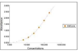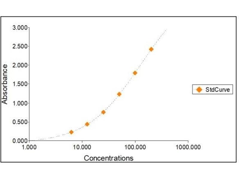 2. The Standards and the test sample(s) should be loaded into the ELISA wells as quickly as possible to avoid a shift in OD readings. Using a multichannel pipette would reduce this occurrence. Pipette 100 μL of Standard 0 (0.0 ng/mL) in duplicate Standard 1 (6.25 ng/mL) in duplicate Standard 2 (12.50 ng/mL) in duplicate Standard 3 (25 ng/mL) in duplicate Standard 4 (50 ng/mL) in duplicate Standard 5 (100 ng/mL) in duplicate Standard 6 (200 ng/mL) in duplicate