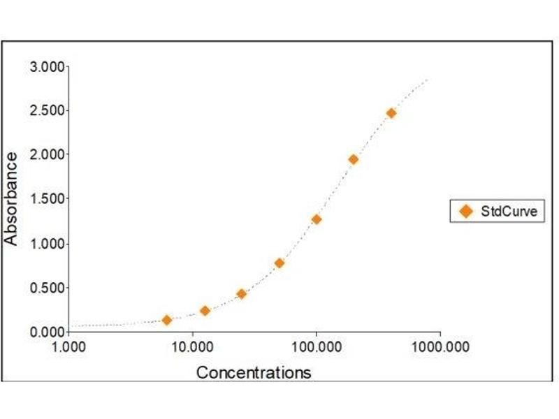 2. The Standards and the test sample(s) should be loaded into the ELISA wells as quickly as possible to avoid a shift in OD readings. Using a multichannel pipette would reduce this occurrence. Pipette 100 μL of Standard 0 (0.0 ng/mL) in duplicate Standard 1 (6.25 ng/mL) in duplicate Standard 2 (12.50 ng/mL) in duplicate Standard 3 (25 ng/mL) in duplicate Standard 4 (50 ng/mL) in duplicate Standard 5 (100 ng/mL) in duplicate Standard 6 (200 ng/mL) in duplicate Standard 7 (400 ng/mL) in duplicate