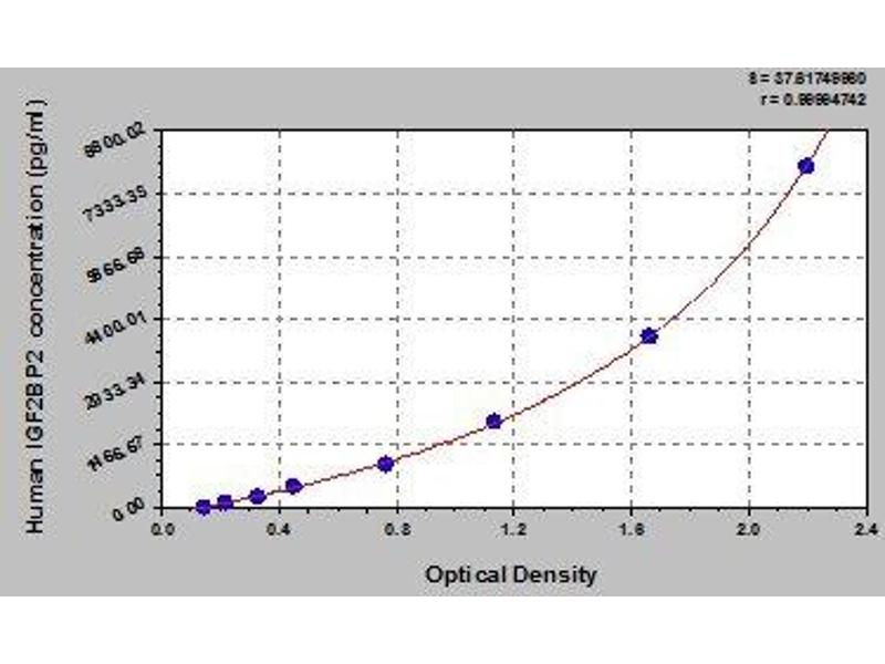 - Antibody specific for IGF2BP2 has been pre-coated onto a microplate. Standards and samples are pipetted into the wells and any IGF2BP2 present is bound by the immobilized antibody. After removing any unbound substances, a biotin-conjugated antibody specific for IGF2BP2 is added to the wells. After washing, avidin conjugated Horseradish Peroxidase (HRP) is added to the wells. Following a wash to remove any unbound avidin-enzyme reagent, a substrate solution is added to the wells and color develops in proportion to the amount of IGF2BP2 bound in the initial step. The color development is stopped and the intensity of the color is measured.