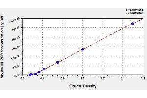 - Antibody specific for NLRP3 has been pre-coated onto a microplate. Standards and samples are pipetted into the wells and any NLRP3 present is bound by the immobilized antibody. After removing any unbound substances, a biotin-conjugated antibody specific for NLRP3 is added to the wells. After washing, avidin conjugated Horseradish Peroxidase (HRP) is added to the wells. Following a wash to remove any unbound avidin-enzyme reagent, a substrate solution is added to the wells and color develops in proportion to the amount of NLRP3 bound in the initial step. The color development is stopped and the intensity of the color is measured.