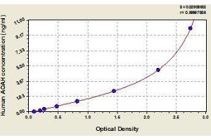 - Antibody specific for AOAH has been pre-coated onto a microplate. Standards and samples are pipetted into the wells and any AOAH present is bound by the immobilized antibody. After removing any unbound substances, a biotin-conjugated antibody specific for AOAH is added to the wells. After washing, avidin conjugated Horseradish Peroxidase (HRP) is added to the wells. Following a wash to remove any unbound avidin-enzyme reagent, a substrate solution is added to the wells and color develops in proportion to the amount of AOAH bound in the initial step. The color development is stopped and the intensity of the color is measured.
