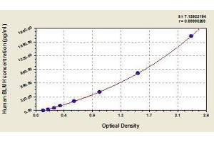 - Antibody specific for BLMH has been pre-coated onto a microplate. Standards and samples are pipetted into the wells and any BLMH present is bound by the immobilized antibody. After removing any unbound substances, a biotin-conjugated antibody specific for BLMH is added to the wells. After washing, avidin conjugated Horseradish Peroxidase (HRP) is added to the wells. Following a wash to remove any unbound avidin-enzyme reagent, a substrate solution is added to the wells and color develops in proportion to the amount of BLMH bound in the initial step. The color development is stopped and the intensity of the color is measured.
