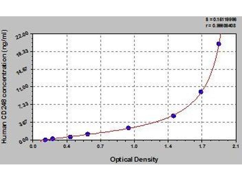 - Antibody specific for CD248 has been pre-coated onto a microplate. Standards and samples are pipetted into the wells and any CD248 present is bound by the immobilized antibody. After removing any unbound substances, a biotin-conjugated antibody specific for CD248 is added to the wells. After washing, avidin conjugated Horseradish Peroxidase (HRP) is added to the wells. Following a wash to remove any unbound avidin-enzyme reagent, a substrate solution is added to the wells and color develops in proportion to the amount of CD248 bound in the initial step. The color development is stopped and the intensity of the color is measured.