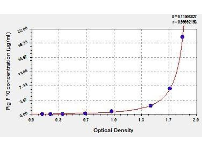 - Antibody specific for F10 has been pre-coated onto a microplate. Standards and samples are pipetted into the wells and any F10 present is bound by the immobilized antibody. After removing any unbound substances, a biotin-conjugated antibody specific for F10 is added to the wells. After washing, avidin conjugated Horseradish Peroxidase (HRP) is added to the wells. Following a wash to remove any unbound avidin-enzyme reagent, a substrate solution is added to the wells and color develops in proportion to the amount of F10 bound in the initial step. The color development is stopped and the intensity of the color is measured.