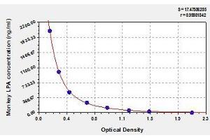 This assay employs the competitive inhibition enzyme immunoassay technique. The microtiter plate provided in this kit has been pre-coated with LPA. Standards or samples are added to the appropriate microtiter plate wells with Horseradish Peroxidase (HRP) conjugated antibody preparation specific for LPA. The competitive inhibition reaction is launched between with pre-coated LPA and LPA in samples. A substrate solution is added to the wells and the color develops in opposite to the amount of LPA in the sample. The color development is stopped and the intensity of the color is measured.