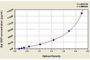 - Antibody specific for GRP has been pre-coated onto a microplate. Standards and samples are pipetted into the wells and any GRP present is bound by the immobilized antibody. After removing any unbound substances, a biotin-conjugated antibody specific for GRP is added to the wells. After washing, avidin conjugated Horseradish Peroxidase (HRP) is added to the wells. Following a wash to remove any unbound avidin-enzyme reagent, a substrate solution is added to the wells and color develops in proportion to the amount of GRP bound in the initial step. The color development is stopped and the intensity of the color is measured.