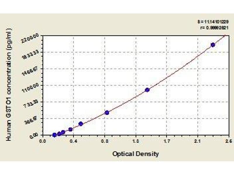 - Antibody specific for GSTO1 has been pre-coated onto a microplate. Standards and samples are pipetted into the wells and any GSTO1 present is bound by the immobilized antibody. After removing any unbound substances, a biotin-conjugated antibody specific for GSTO1 is added to the wells. After washing, avidin conjugated Horseradish Peroxidase (HRP) is added to the wells. Following a wash to remove any unbound avidin-enzyme reagent, a substrate solution is added to the wells and color develops in proportion to the amount of GSTO1 bound in the initial step. The color development is stopped and the intensity of the color is measured.