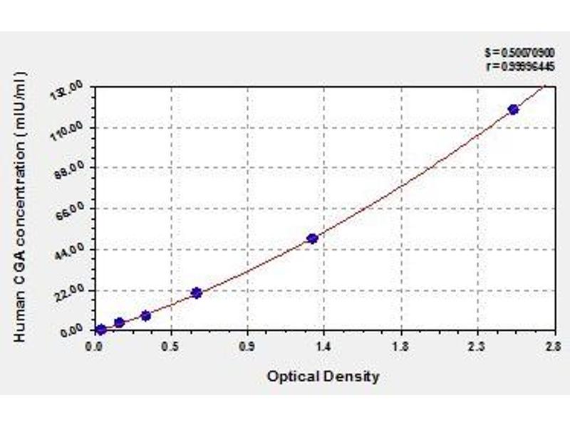 - Antibody specific for CGA has been pre-coated onto a microplate. Standards and samples are pipetted into the wells and any CGA present is bound by the immobilized antibody. After removing any unbound substances, a biotin-conjugated antibody specific for CGA is added to the wells. After washing, avidin conjugated Horseradish Peroxidase (HRP) is added to the wells. Following a wash to remove any unbound avidin-enzyme reagent, a substrate solution is added to the wells and color develops in proportion to the amount of CGA bound in the initial step. The color development is stopped and the intensity of the color is measured.