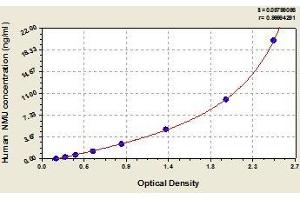 - This assay employs the quantitative sandwich enzyme immunoassay technique. Antibody specific for NMU has been pre-coated onto a microplate. Standards and samples are pipetted into the wells and any NMU present is bound by the immobilized antibody. After removing any unbound substances, a biotin-conjugated antibody specific for NMU is added to the wells. After washing, avidin conjugated Horseradish Peroxidase (HRP) is added to the wells. Following a wash to remove any unbound avidin-enzyme reagent, a substrate solution is added to the wells and color develops in proportion to the amount of NMU bound in the initial step. The color development is stopped and the intensity of the color is measured.