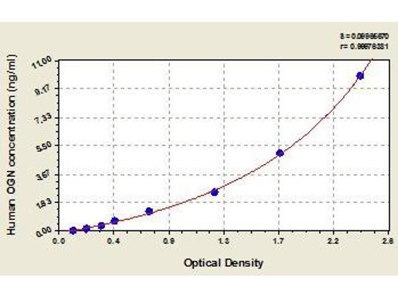 - Antibody specific for OGN has been pre-coated onto a microplate. Standards and samples are pipetted into the wells and any OGN present is bound by the immobilized antibody. After removing any unbound substances, a biotin-conjugated antibody specific for OGN is added to the wells. After washing, avidin conjugated Horseradish Peroxidase (HRP) is added to the wells. Following a wash to remove any unbound avidin-enzyme reagent, a substrate solution is added to the wells and color develops in proportion to the amount of OGN bound in the initial step. The color development is stopped and the intensity of the color is measured.