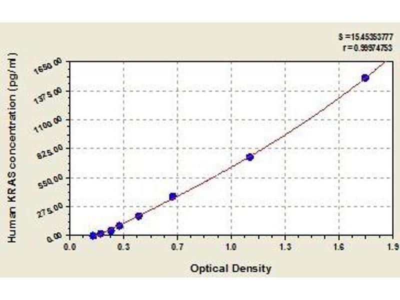 - Antibody specific for KRAS has been pre-coated onto a microplate. Standards and samples are pipetted into the wells and any KRAS present is bound by the immobilized antibody. After removing any unbound substances, a biotin-conjugated antibody specific for KRAS is added to the wells. After washing, avidin conjugated Horseradish Peroxidase (HRP) is added to the wells. Following a wash to remove any unbound avidin-enzyme reagent, a substrate solution is added to the wells and color develops in proportion to the amount of KRAS bound in the initial step. The color development is stopped and the intensity of the color is measured.