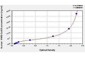 - This assay employs the quantitative sandwich enzyme immunoassay technique. Antibody specific for HMG-CoAR has been pre-coated onto a microplate. Standards and samples are pipetted into the wells and any HMG-CoAR present is bound by the immobilized antibody. After removing any unbound substances, a biotin-conjugated antibody specific for HMG-CoAR is added to the wells. After washing, avidin conjugated Horseradish Peroxidase (HRP) is added to the wells. Following a wash to remove any unbound avidin-enzyme reagent, a substrate solution is added to the wells and color develops in proportion to the amount of HMG-CoAR bound in the initial step. The color development is stopped and the intensity of the color is measured.