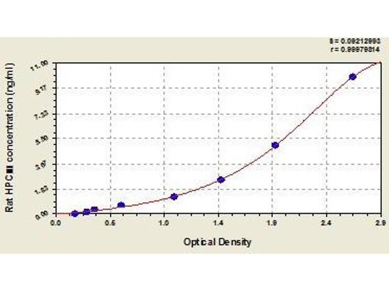 - This assay employs the quantitative sandwich enzyme immunoassay technique. Antibody specific for HPCⅢ has been pre-coated onto a microplate. Standards and samples are pipetted into the wells and any HPCⅢ present is bound by the immobilized antibody. After removing any unbound substances, a biotin-conjugated antibody specific for HPCⅢ is added to the wells. After washing, avidin conjugated Horseradish Peroxidase (HRP) is added to the wells. Following a wash to remove any unbound avidin-enzyme reagent, a substrate solution is added to the wells and color develops in proportion to the amount of HPCⅢ bound in the initial step. The color development is stopped and the intensity of the color is measured.