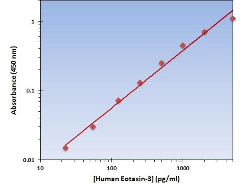 The Human Eotaxin-3 ELISA is capable of recognizing both recombinant and naturally produced Human Eotaxin-3 proteins.