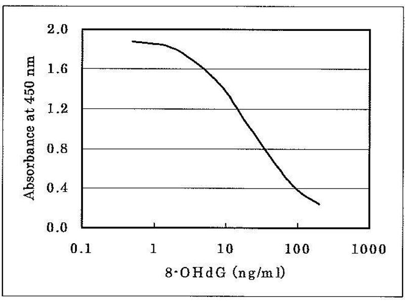 1. The anti-8-OHdG monoclonal antibody and the sample or calibrator are added to the microtiter plate which has been pre-coated with 8-OHdG. The 8-OHdG monoclonal antibody reacts competitively with the 8-OHdG bound on the plate and the 8-OHdG in sample solution. Therefore higher concentrations of 8-OHdG in the sample solution lead to a reduced binding of the antibody to the 8-OHdG on the plate.