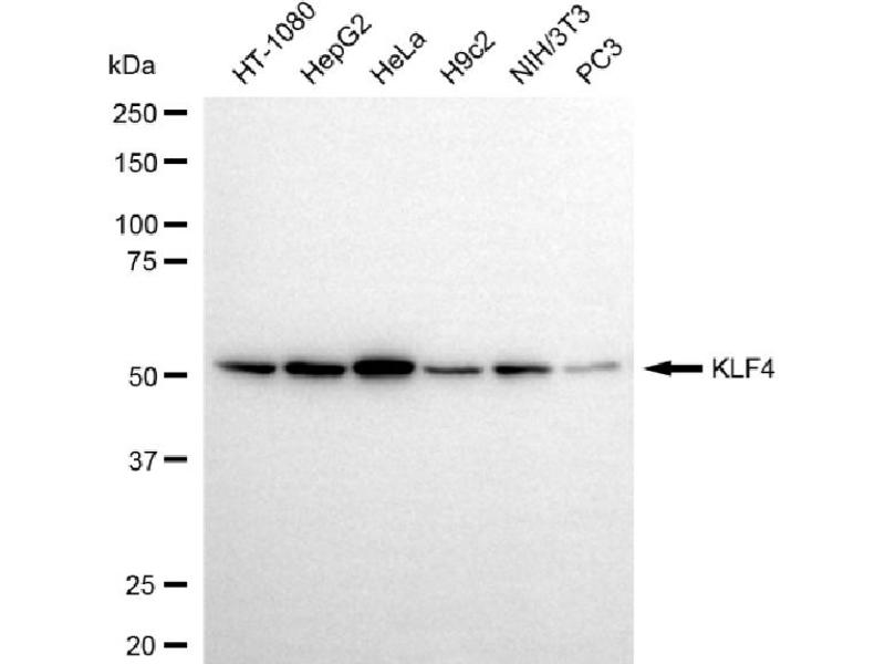 KD Validated KLF4 Reactivité: Humain WB, FACS Hôte: Lapin Monoclonal 25GB2120 unconjugated Recombinant Antibody
