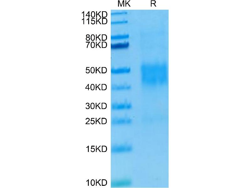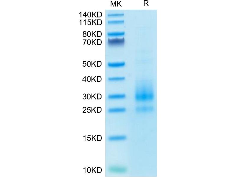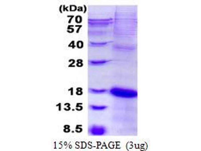 The purity of the protein is greater than 95 % as determined by SDS-PAGE and Coomassie blue staining.