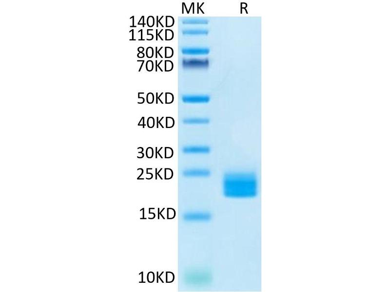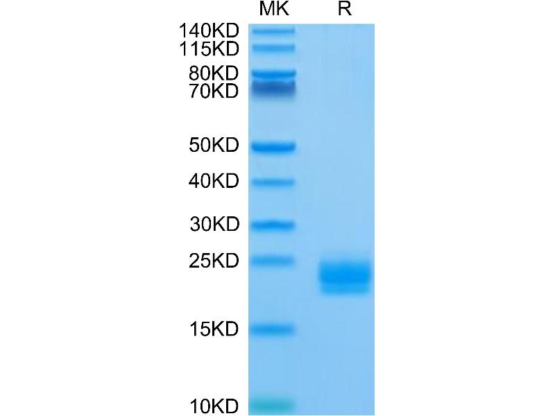 The purity of the protein is greater than 95 % as determined by SDS-PAGE and Coomassie blue staining.