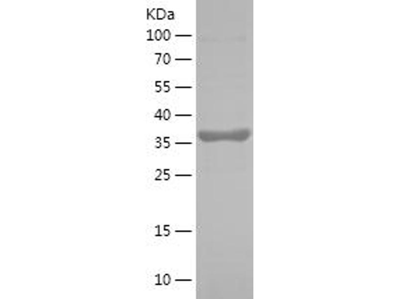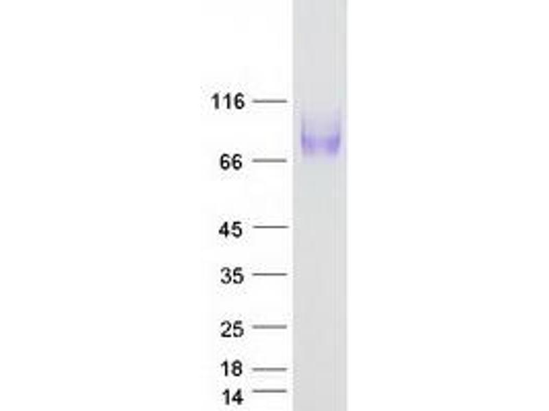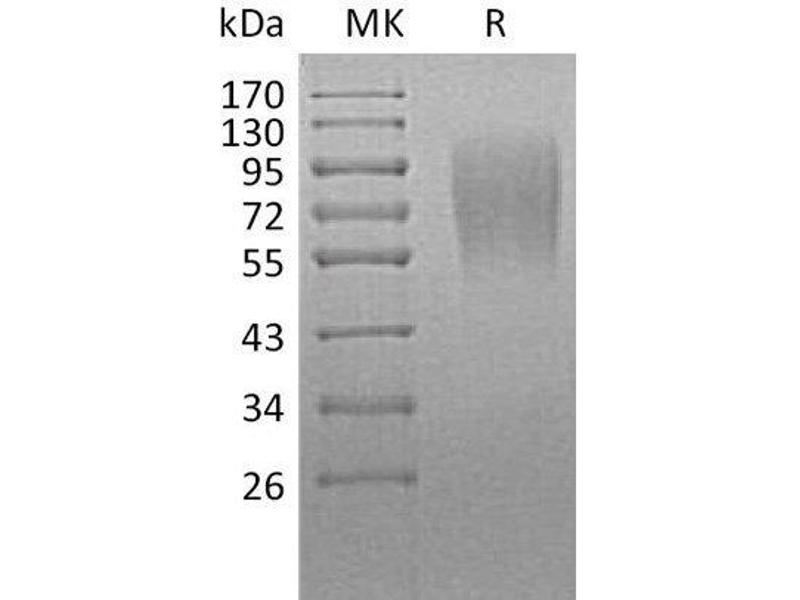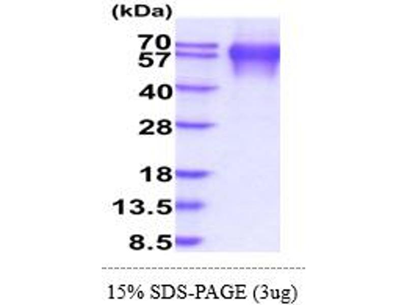 The purity of the protein is greater than 85 % as determined by SDS-PAGE and Coomassie blue staining.