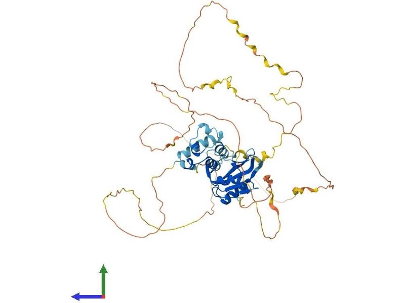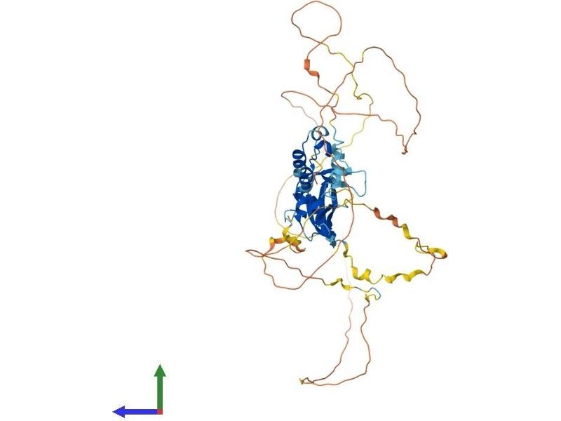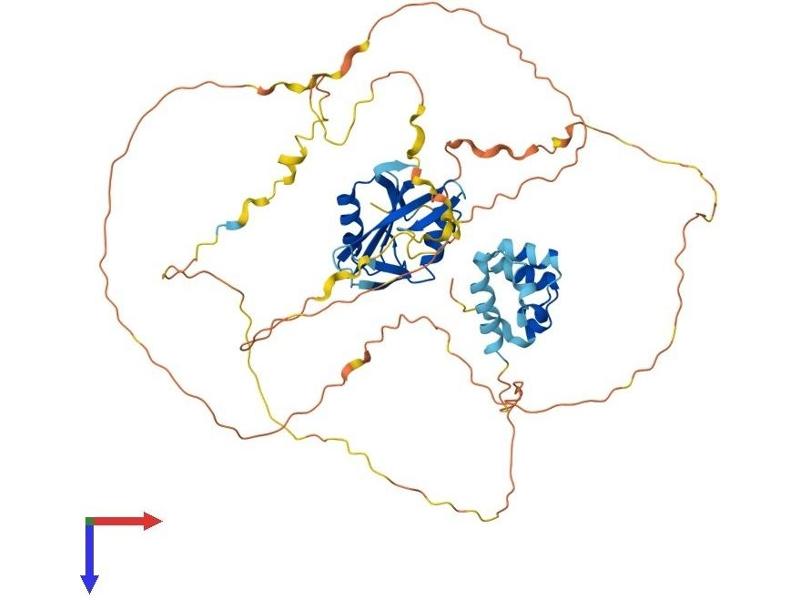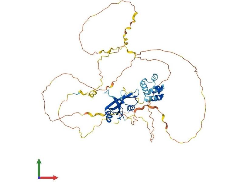 SLP-76 was originally identified as a substrate of the ZAP-70 protein tyrosine kinase following T cell receptor (TCR) ligation in the leukemic T cell line Jurkat. The SLP-76 locus has been localized to human chromosome 5q33 and the gene structure has been partially characterized in mice. The human and murine cDNAs both encode 533 amino acid proteins that are 72% identical and comprised of three modular domains. The NH2-terminus contains an acidic region that includes a PEST domain and several tyrosine residues which are phosphorylated following TCR ligation. SLP-76 also contains a central proline-rich domain and a COOH-terminal SH2 domain. A number of additional proteins have been identified that associate with SLP-76 both constitutively and inducibly following receptor ligation, supporting the notion that SLP-76 functions as an adaptor or scaffold protein. Studies using SLP-76 deficient T cell lines or mice have provided strong evidence that SLP-76 plays a positive role in promoting T cell development and activation as well as mast cell and platelet function. [provided by RefSeq, Jul 2008].