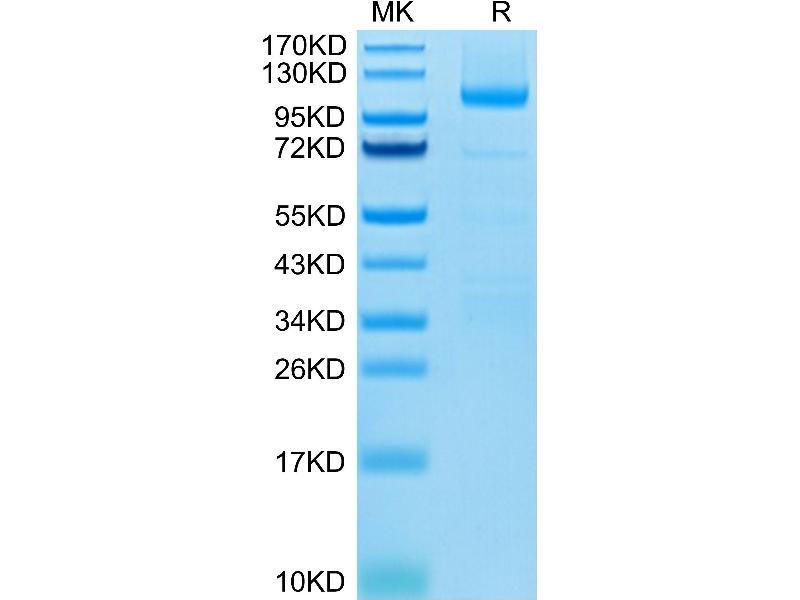 The purity of the protein is greater than 95 % as determined by SDS-PAGE and Coomassie blue staining.