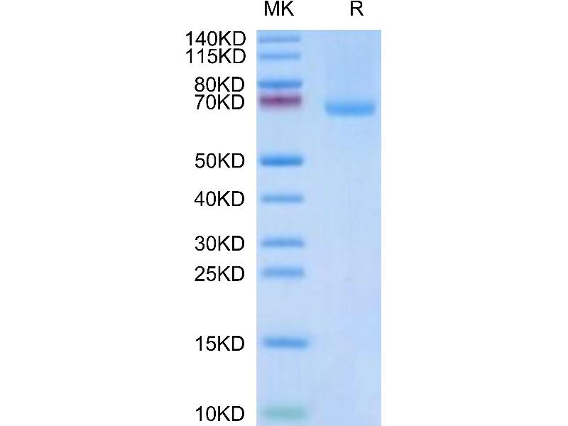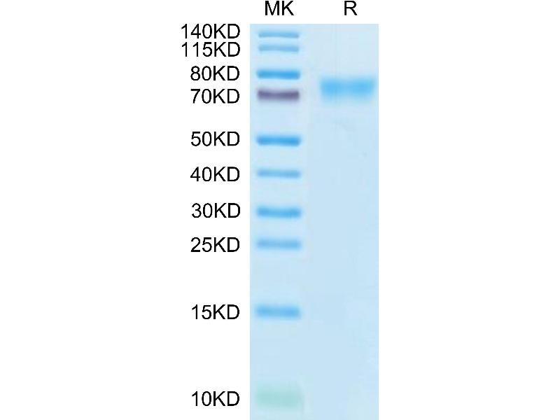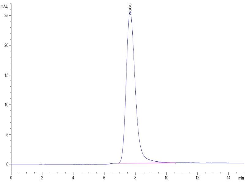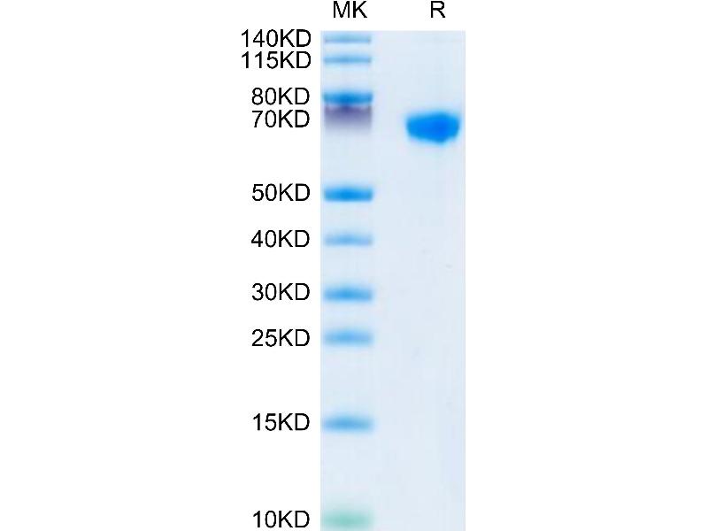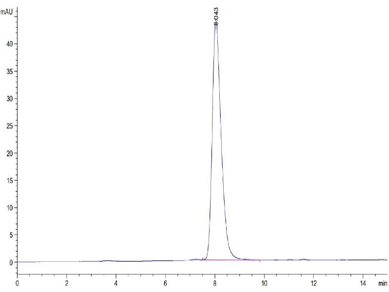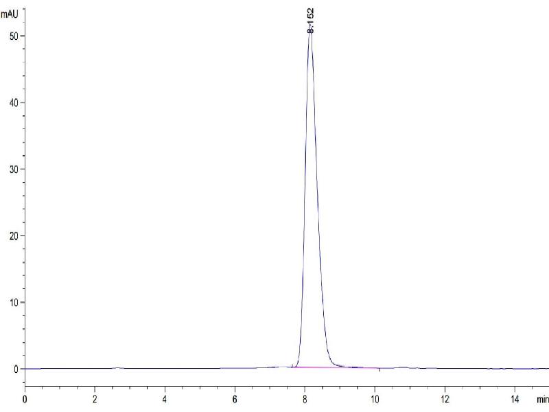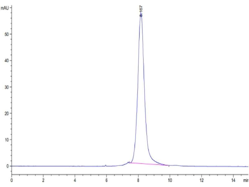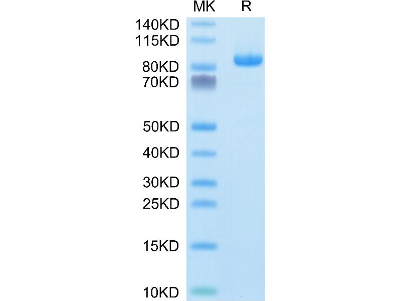 The purity of the protein is greater than 85 % as determined by SDS-PAGE and Coomassie blue staining.