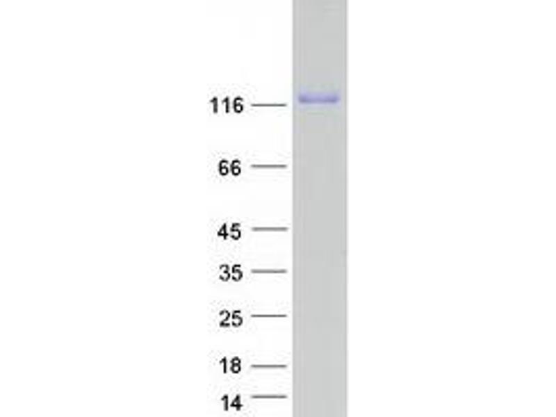 The purity of the protein is greater than 85 % as determined by SDS-PAGE and Coomassie blue staining.