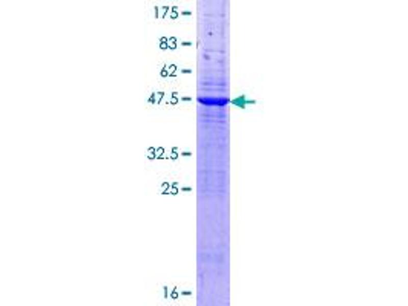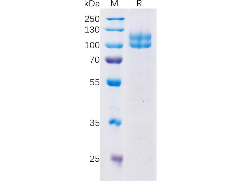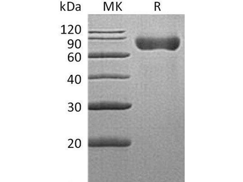 The purity of the protein is greater than 90 % as determined by SDS-PAGE and Coomassie blue staining.
