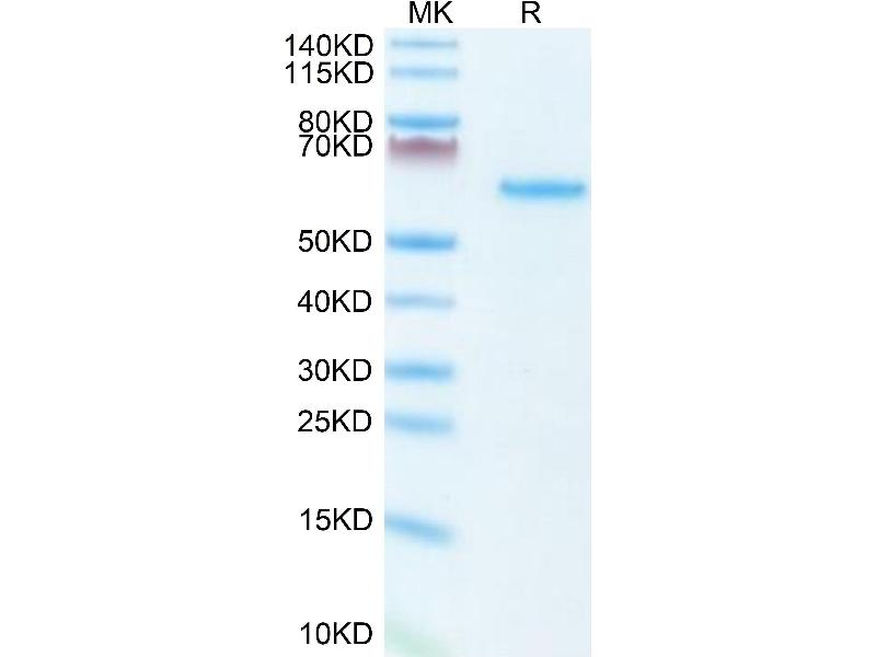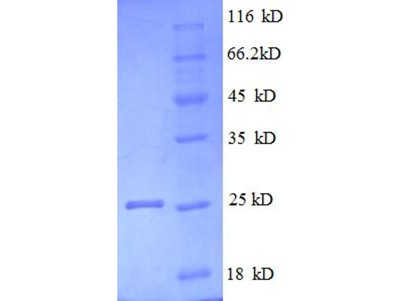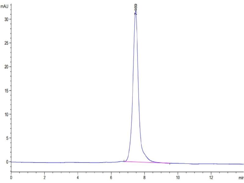 The purity of the protein is greater than 95 % as determined by SDS-PAGE and Coomassie blue staining.