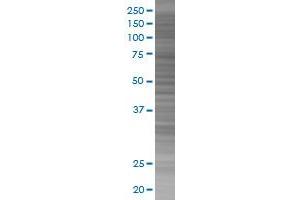 Product Quality tested by: Transient overexpression cell lysate was tested with Anti-IFNGR1 antibody by Western Blots.