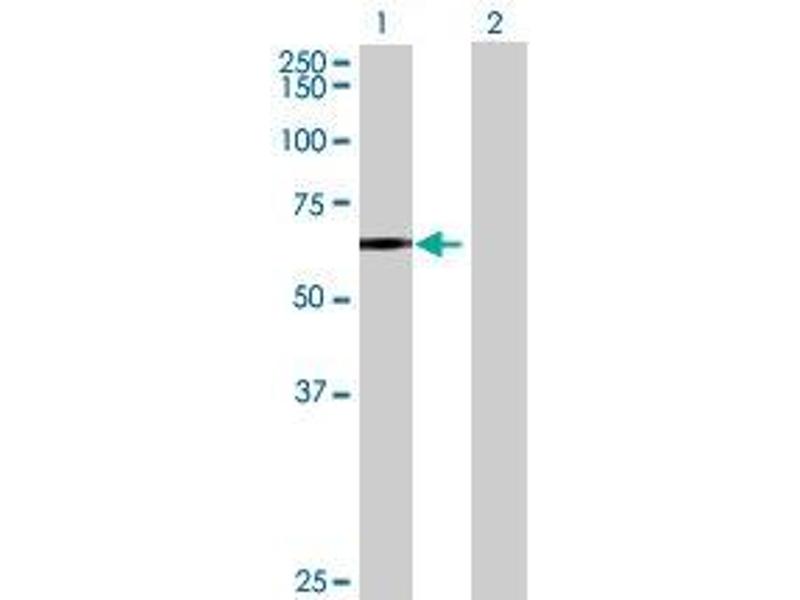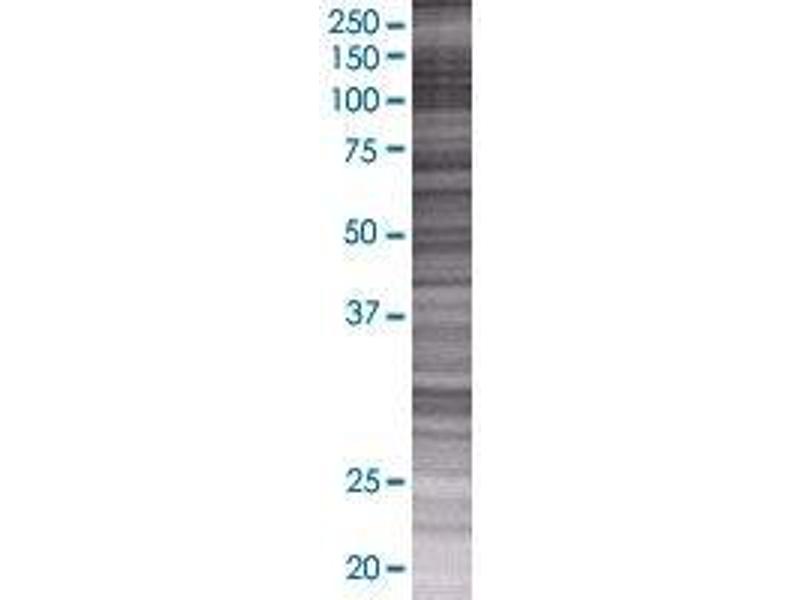Product Quality tested by: Transient overexpression cell lysate was tested with Anti-ZNF10 antibody by Western Blots.