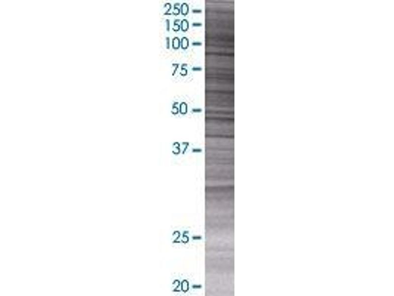 Product Quality tested by: Transient overexpression cell lysate was tested with Anti-EXO1 antibody by Western Blots.