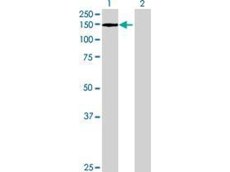 Product Quality tested by: Transient overexpression cell lysate was tested with Anti-EP400 antibody by Western Blots.