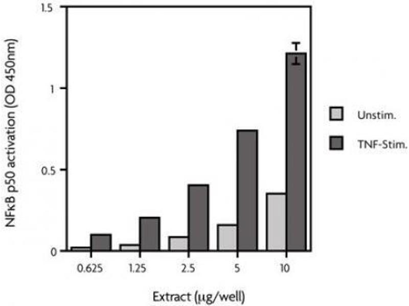 - 2 x 125 μg of HeLa whole-cell extract (TNF-α stimulated) at 2.50 μg/μl
