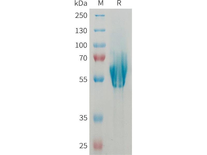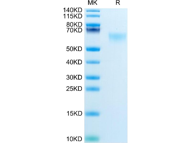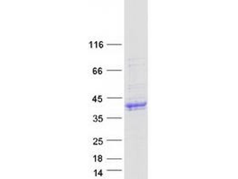 The purity of the protein is greater than 85 % as determined by SDS-PAGE and Coomassie blue staining.
