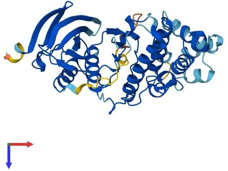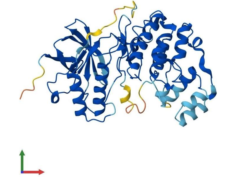 This gene encodes a member of the mitogen-activated protein (MAP) kinase family. MAP kinases act as an integration point for multiple biochemical signals, and are involved in a wide variety of cellular processes such as proliferation, differentiation, transcription regulation and development. The encoded protein is a p38 MAP kinase and is activated by proinflammatory cytokines and cellular stress. Substrates of the encoded protein include the transcription factor ATF2 and the microtubule dynamics regulator stathmin. Alternatively spliced transcript variants have been observed for this gene. [provided by RefSeq, Jul 2012].